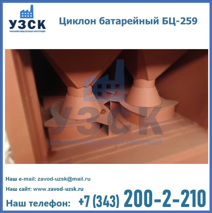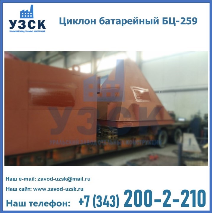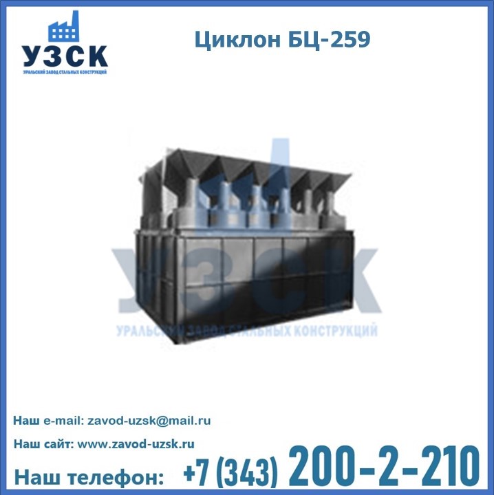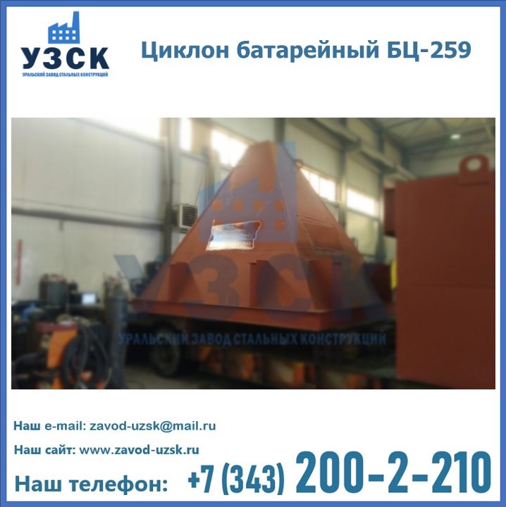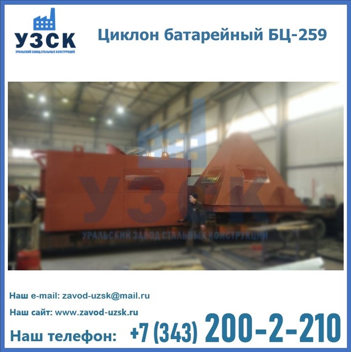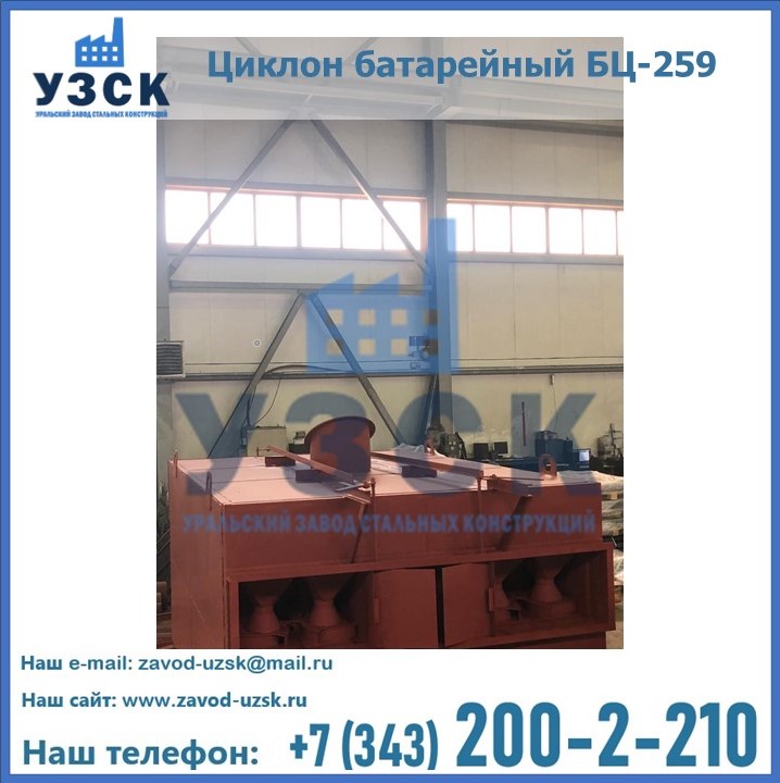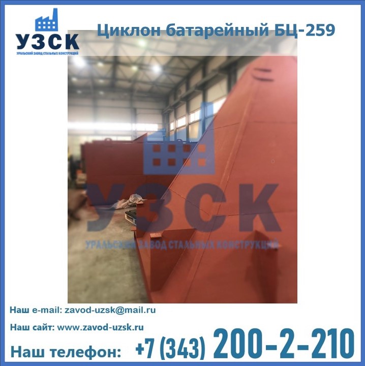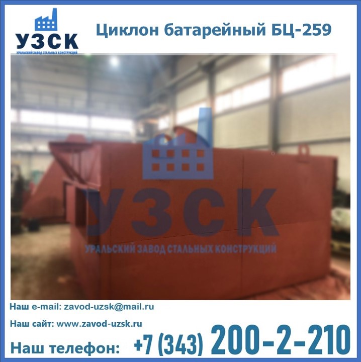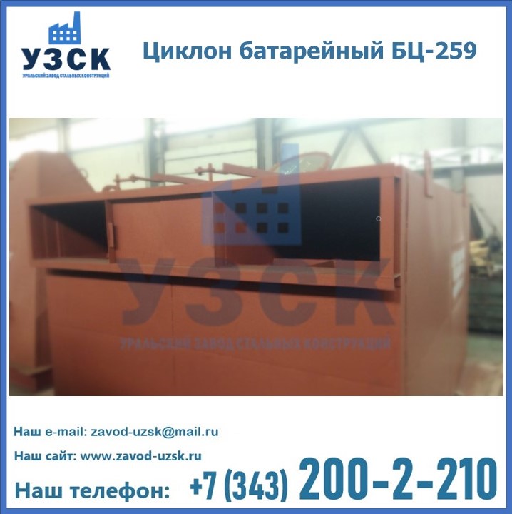 Приобрести качественное оборудование, в том числе, циклоны БЦ-259, можно в компании УЗСК в Нарыне. Мы предлагаем долговечную и надежную продукцию по приемлемой цене. Заказать и купить циклоны или другие изделия высокого качества можно через сайт Уральского Завода Стальных Конструкций, или позвонив по указанному в разделе «Контакты» телефону.