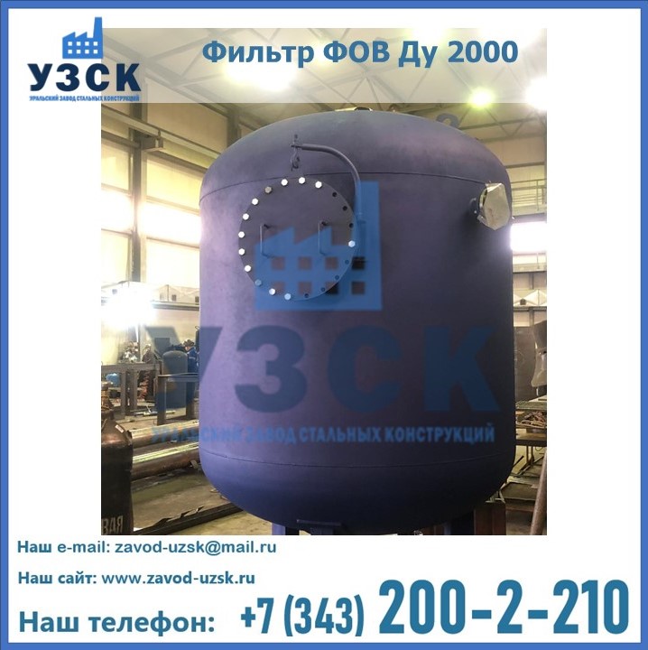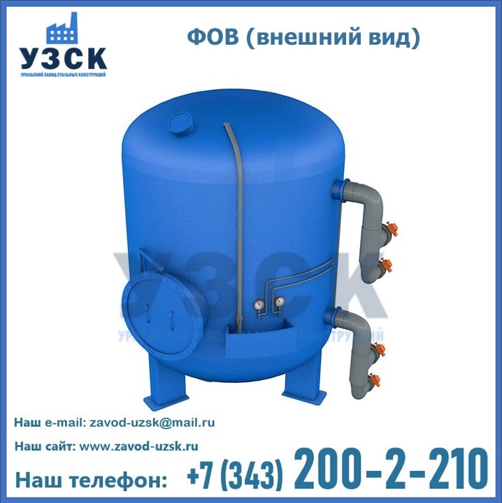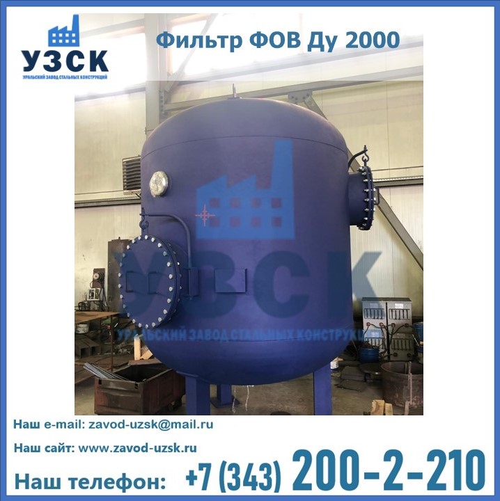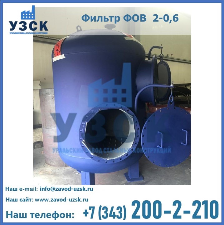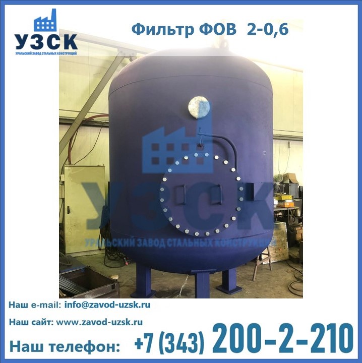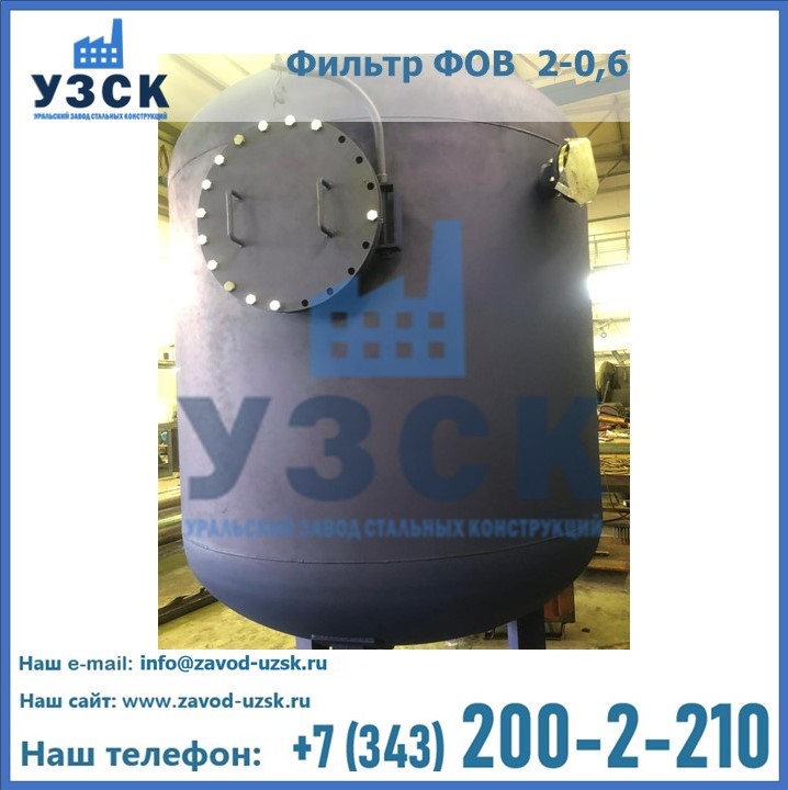 Удаление взвешенных веществ различного уровня дисперсности из рабочих жидкостей эффективно проводит фильтр осветлительный типа ФОВ (скорый или механический) — вертикально-цилиндрической формы установка, разработанная для систем водоподготовки различного класса. Оборудование представляет собой однокамерный агрегат для очистки воды рекомендованный для применения на станциях очистки стоков, в коммунальных котельных, на ТЭЦ, в промышленных отопительных системах и пр. Заказать производство ФОВ фильтров предлагает наш Уральский завод стальных конструкций в Нарыне. У нас можно купить фильтрационное оборудование различного класса и типа, в том числе фильтры ФОВ из нержавеющей стали.