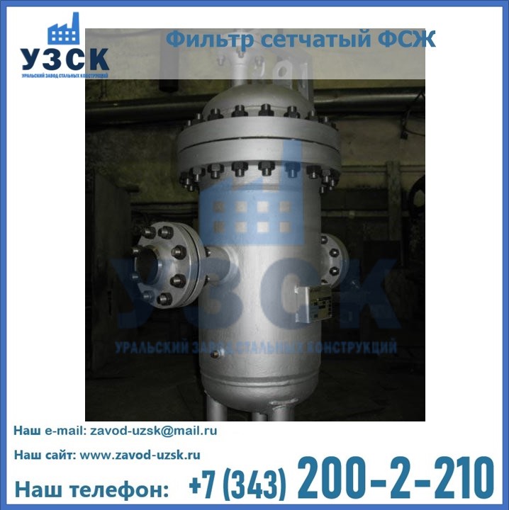 Очистку перекачиваемых жидкостей на предприятиях нефтяной, пищевой, горнорудной, фармацевтической и других отраслей промышленности эффективно выполнять с помощью жидкостного сетчатого фильтра — емкостное оборудование цилиндрической формы со съемной крышкой и элементом фильтрации внутри. Оснащенные им всасывающие линии насосных станций и установок защищены от проникновения твердых частиц в функциональные узлы гидравлической системы. Оборудование служит для перекачивания токсичных, агрессивных и иных эмульсий, суспензий, жидкостей. Купить фильтр сетчатый жидкостный ФСЖ в Нарыне с гарантией производителя предлагает «Уральский завод стальных конструкций». Мы выполняем проектирование и изготовление ФСЖ по индивидуальным требованиям (климатическая зона, транспортируемая жидкость).