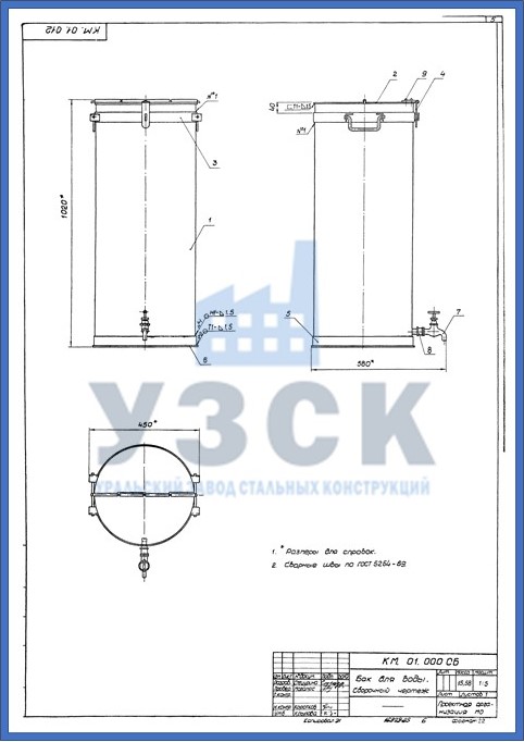 УЗСК изготавливает баки питьевые для воды БВ-100, объемом 0,1 м3 по чертежам из альбома серии 07-000-1у, выпуск 5. Модель разработана для быстровозводимых убежищ ГО.